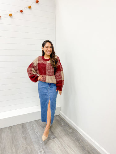 THE PILAR PLAID KNIT PATTERN CREWNECK PULLOVER SWEATER