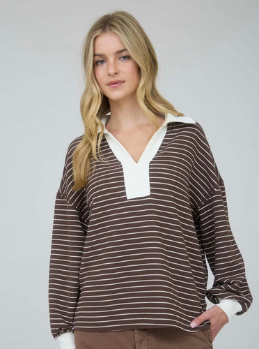 THE BRIANA CONTRAST COLLAR STRIPE LONG SLEEVE KNIT TOP