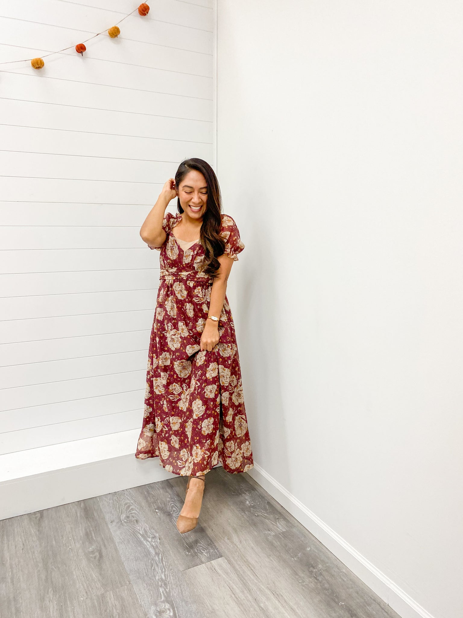 FLORAL SWEETHEART NECK BACK TIE MIDI DRESS