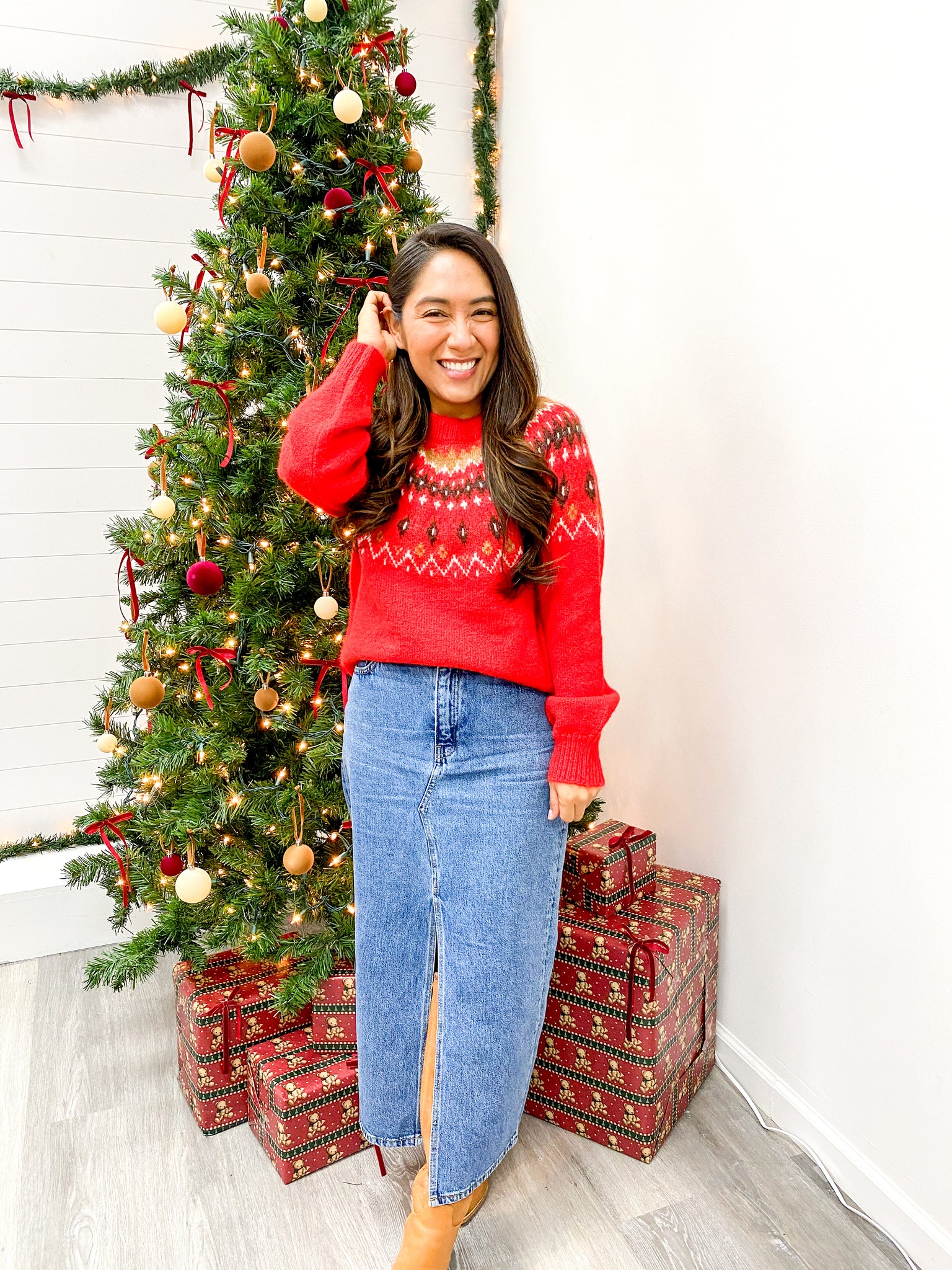 FUZZY FAIR ISLE CREW NECK KNIT PULLOVER SWEATER
