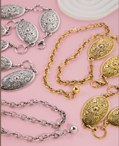• The Willow Western Intricate Floral Pattern Oval Chain Belt