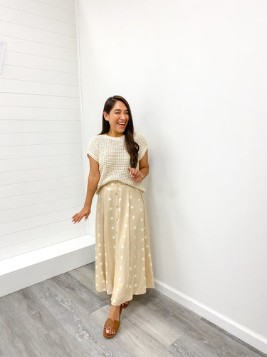 THE CARLA POLKA DOT BUTTON DOWN MIDI SKIRT