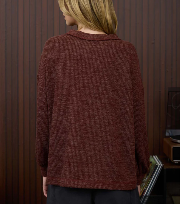 ROUND NECK CREW NECKLINE LONG SLEEVES DROP SHOULDER POCKET DETAIL RELAXED FIT SOLID NOT LINED KNIT TOP 85%POLYESTER 12%RAYON 3%SPANDEX