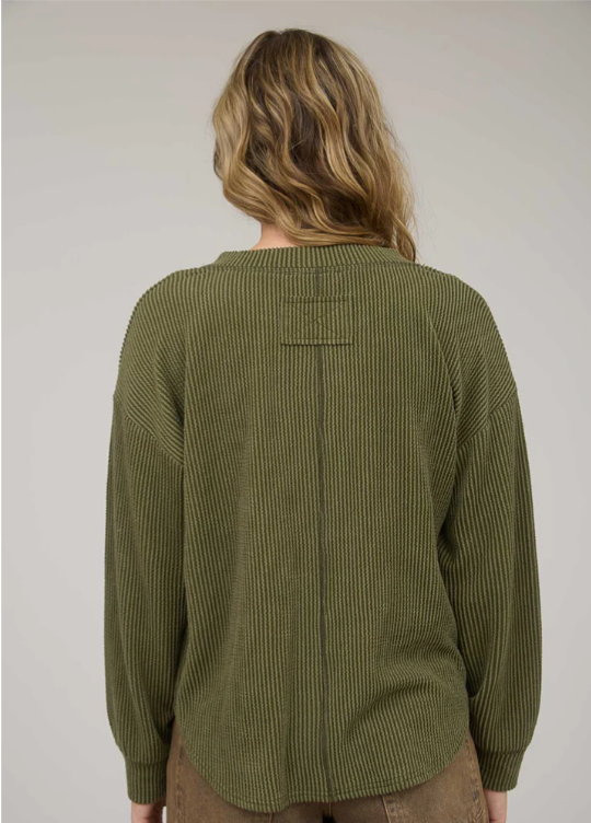 WASHED RIBBED LONG SLEEVE HENLEY KNIT TOP