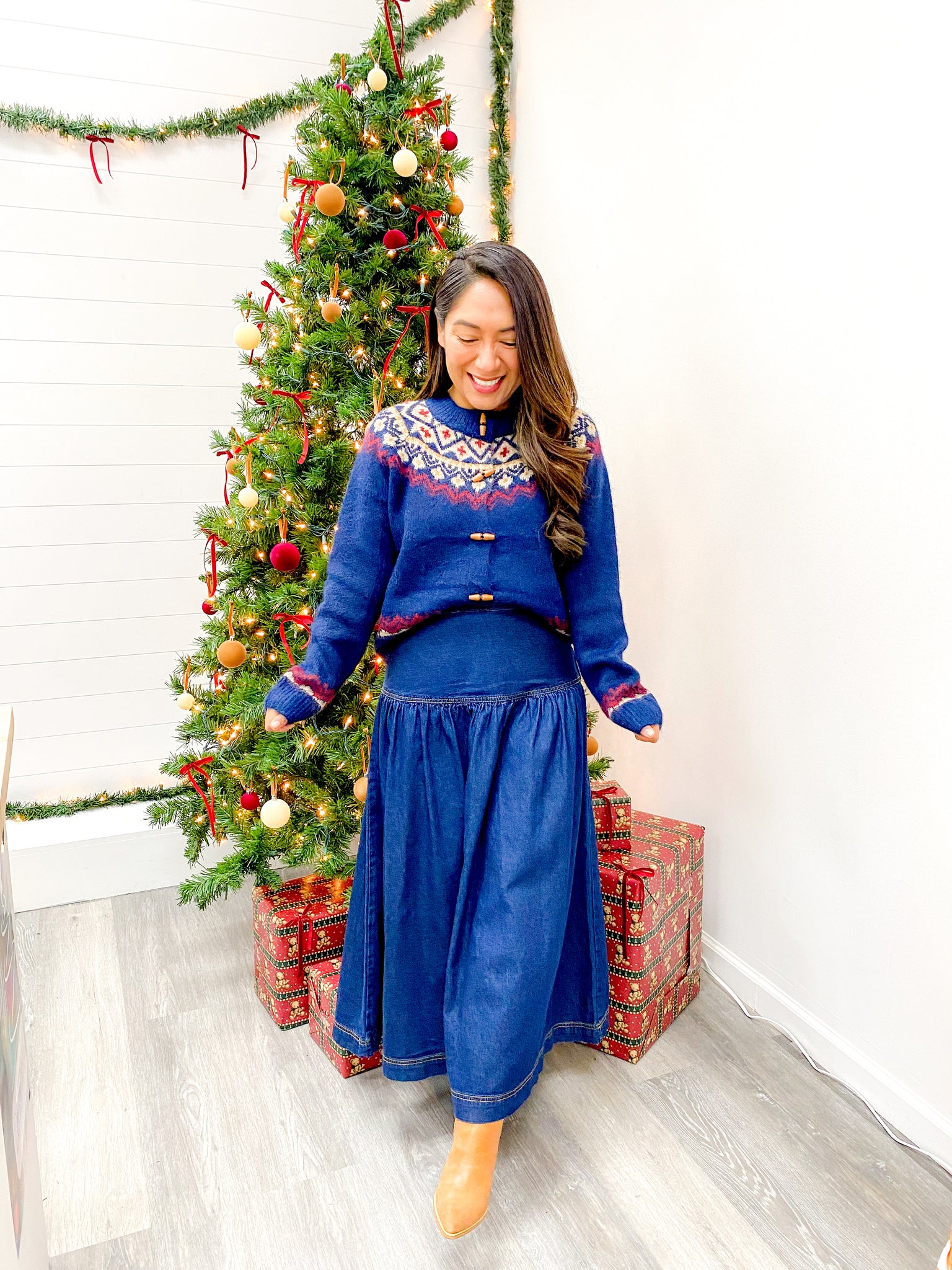 FAIRE ISLE TOGGLE BUTTON KNIT CARDIGAN SWEATER